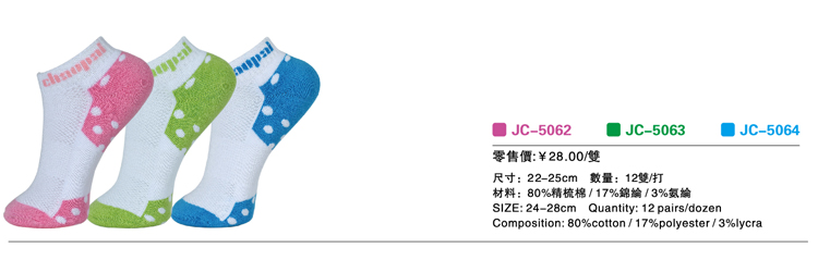 Quantity: 12 pairs/dozen Composition:80%cotton/17%polyester/3%lycra
